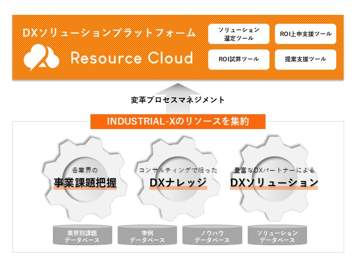 INDUSTRIAL-X独自のリソースをプロセスマネジメントして作り上げるプラットフォームを3つのフェーズに分けて提供することで企業の変革を支援するプラットフォーム構想として、XPaaS(Transformation Platform as a Service)を展開。